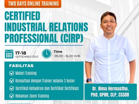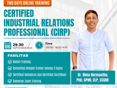 Two Days Workshop Online CERTIFIED INDUSTRIAL RELATIONS PROFESSIONAL (SERTIFIKASI PRAKTISI HUBUNGAN INDUSTRIAL) 29-30 September 2025, Via Aplikasi Zoom ================================================================================ MATERI BERDASARKAN YANG DIANJURKAN ILO, APINDO, DEPNAKER, […]